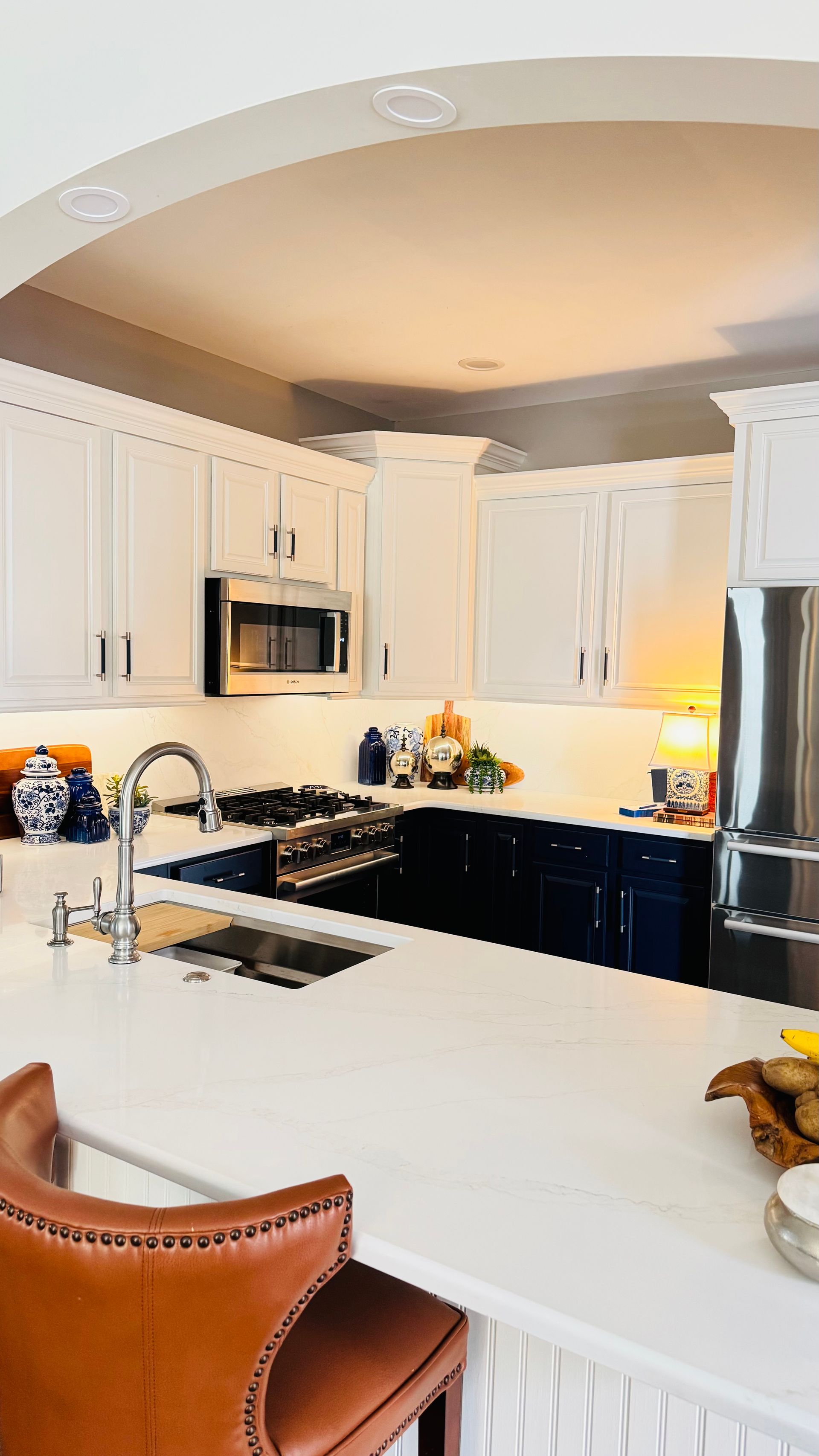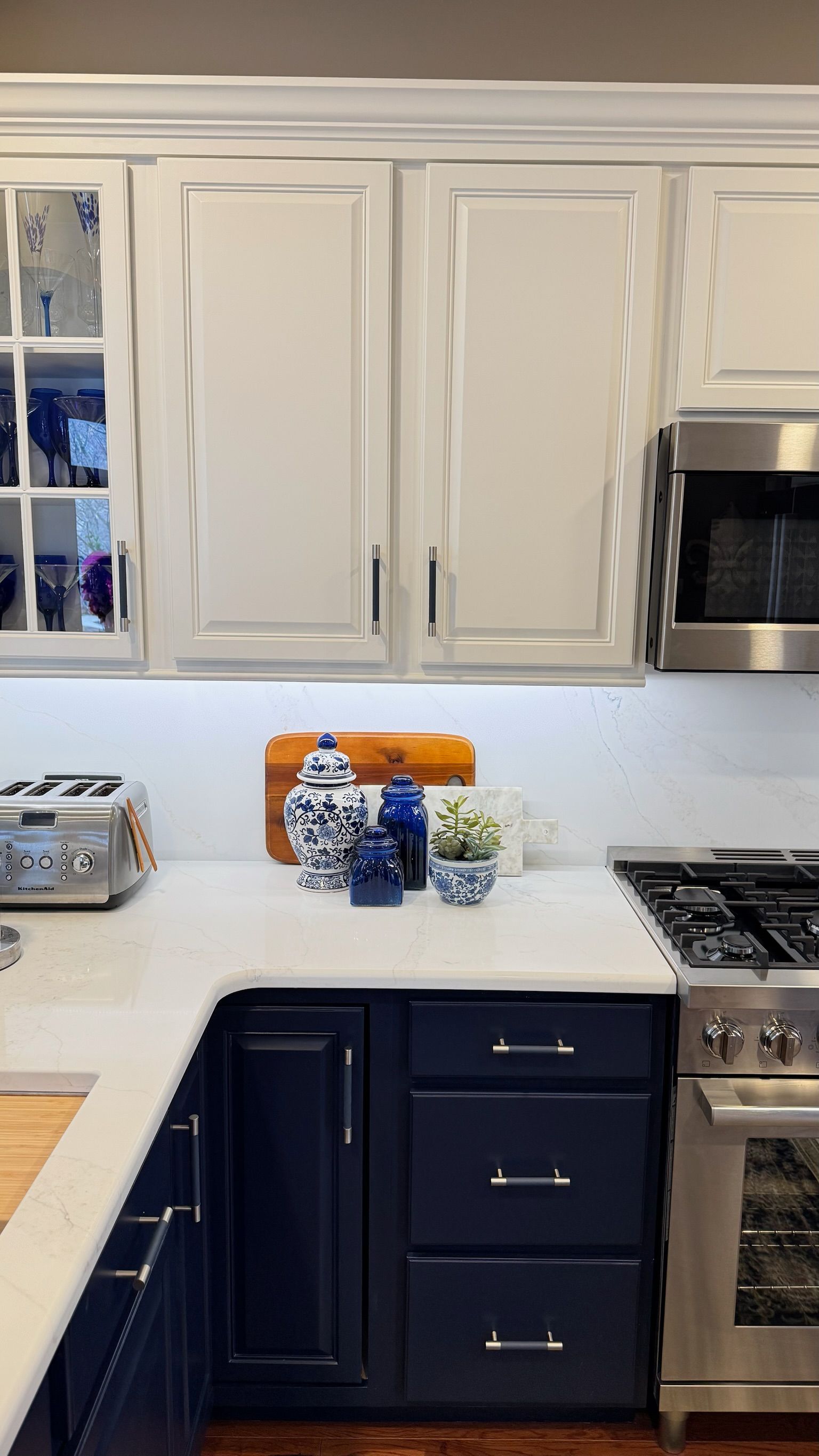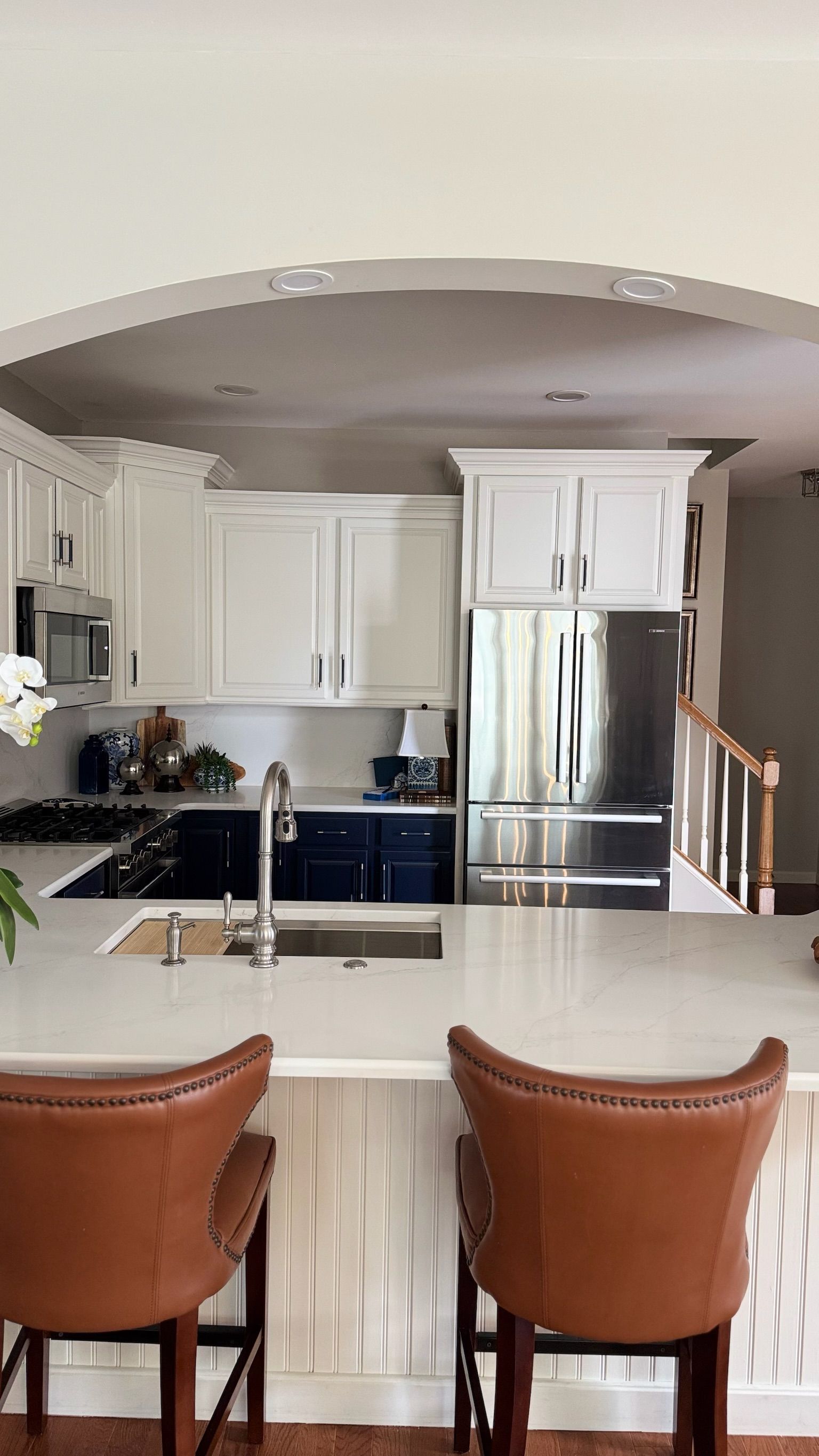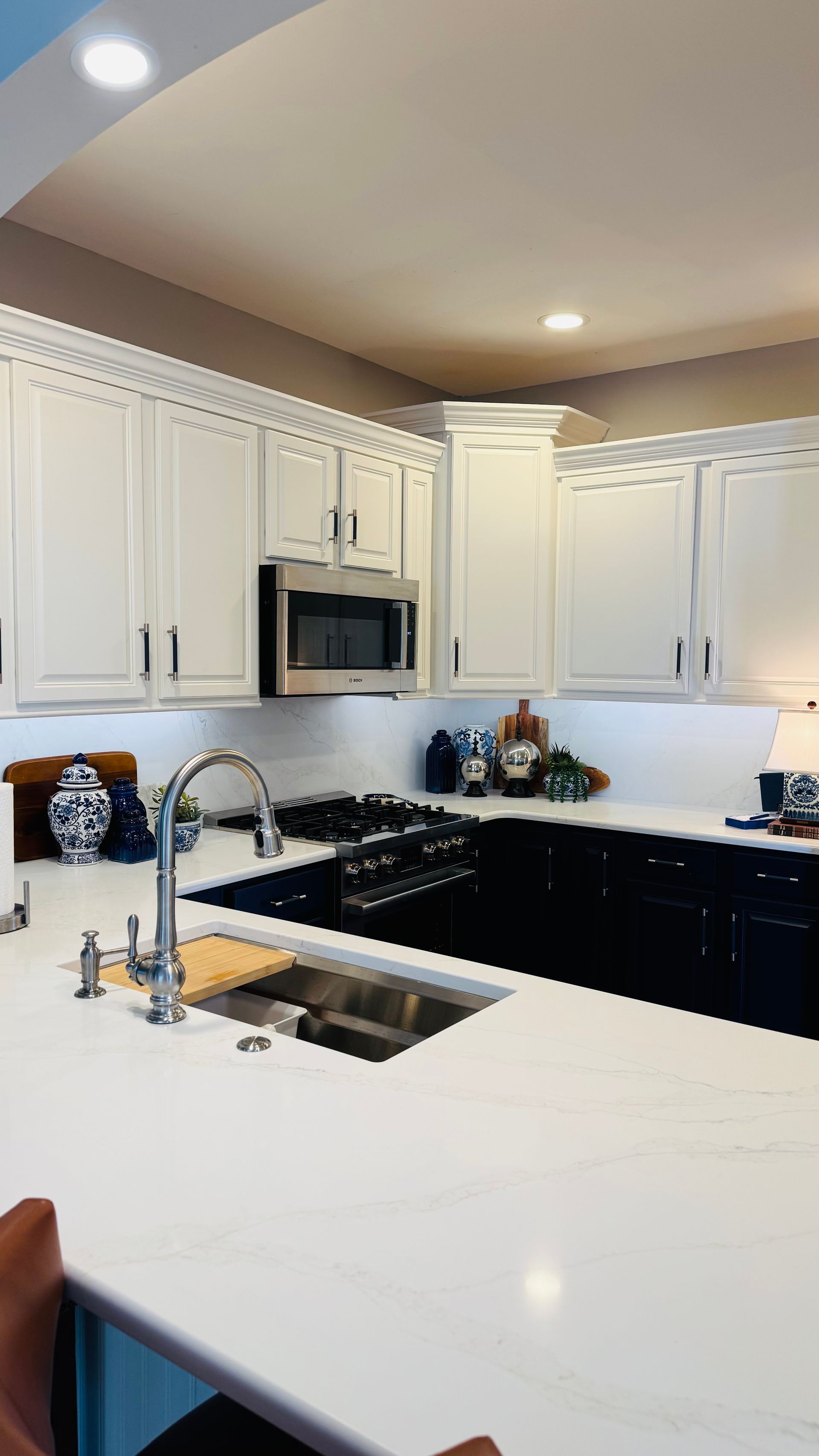 Our favorite part of this project wasn’t just the gorgeous blue paint or the elegant quartz—it was helping a homeowner fall in love with her space again. As a retiree with grown children and young grandchildren, our client wanted a kitchen that would welcome everyone. One that matched her cheerful personality, her love of entertaining, and the way she truly lives.