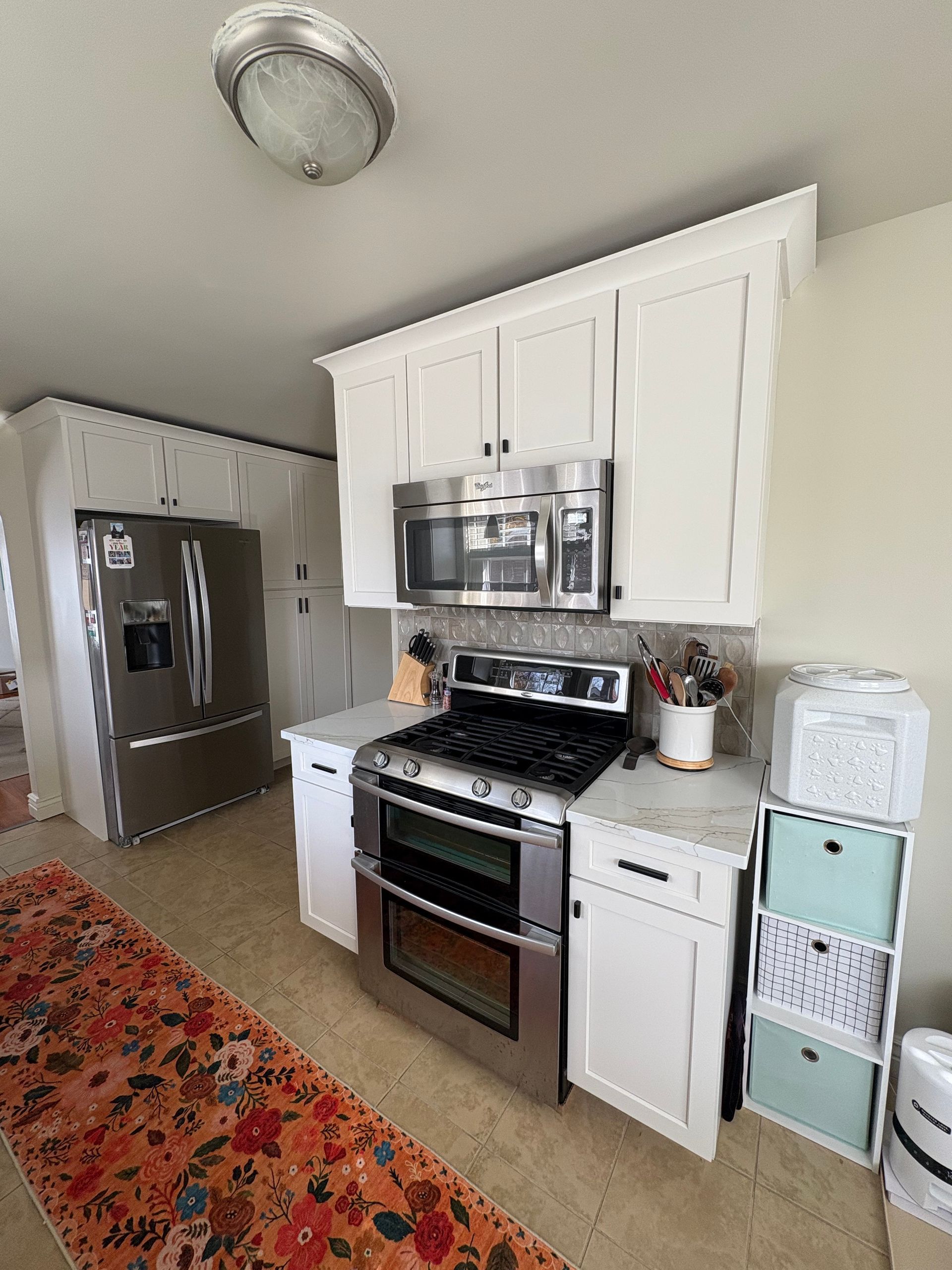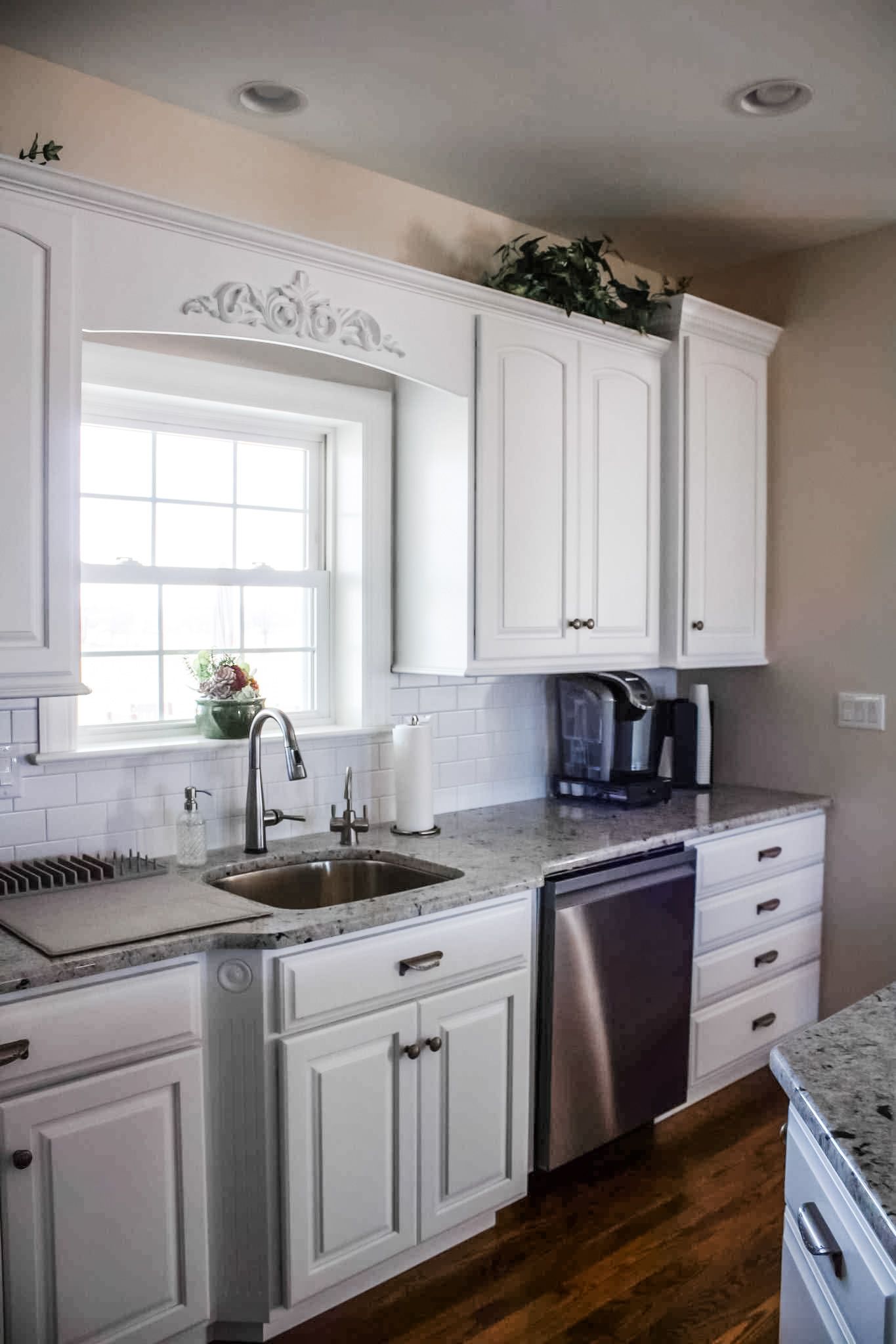 Colonial White Quartz Level D | 3x6 white tile, uptown Subway | Paint: Chantilly Lace
