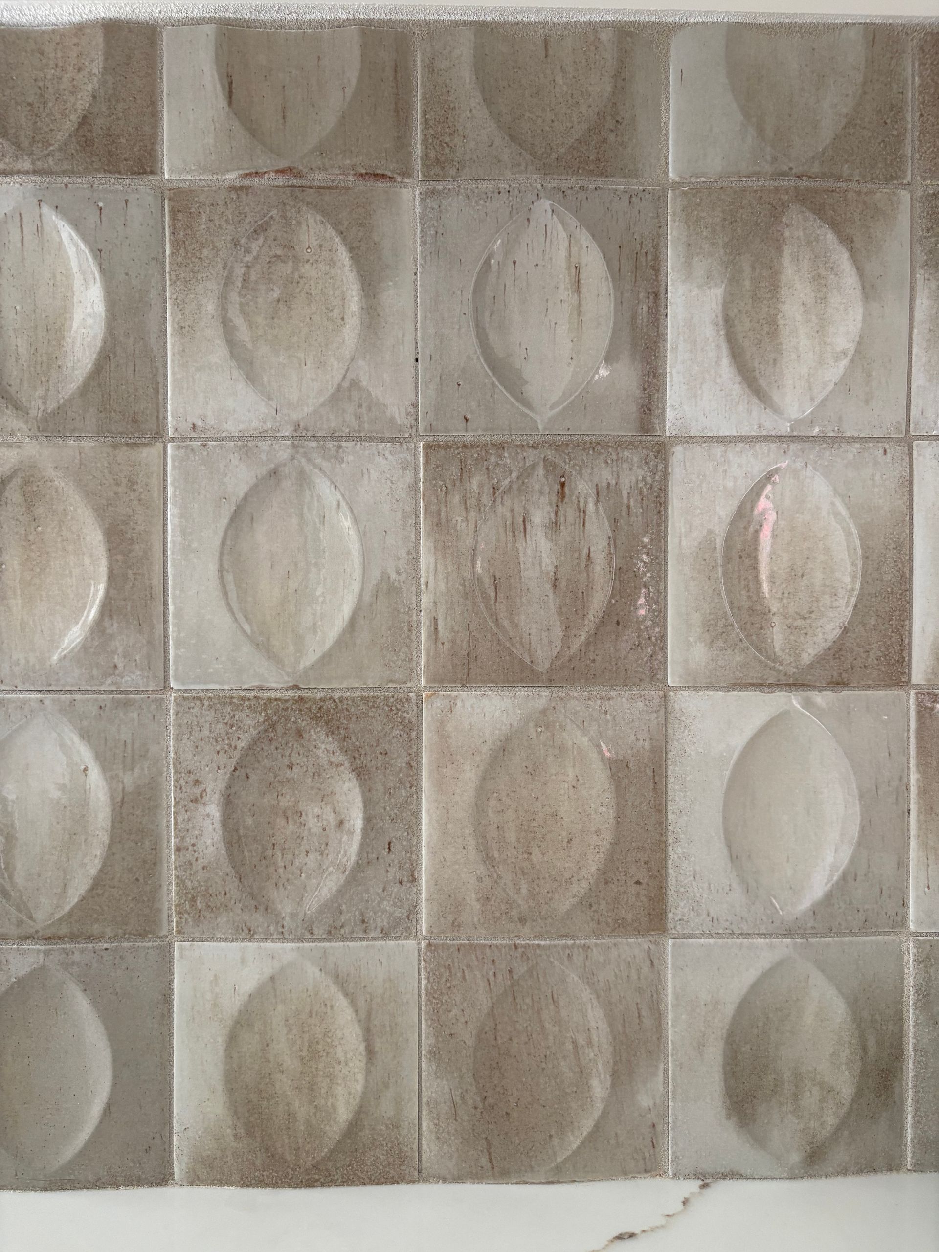 Backsplash: Ozean beige struttura uovo | Grout color: Ivory 5039